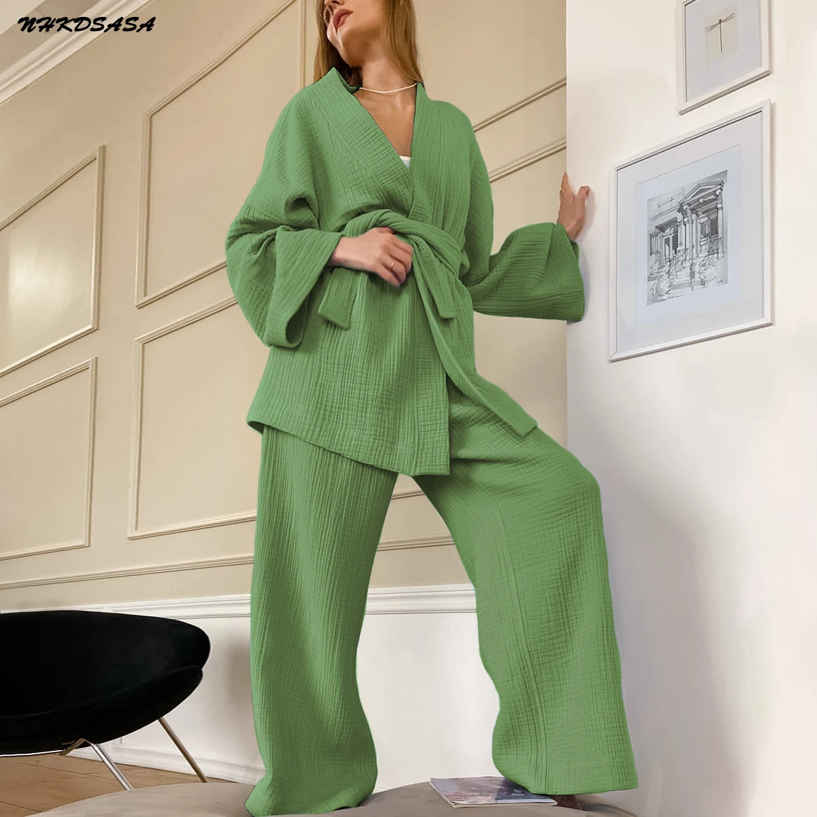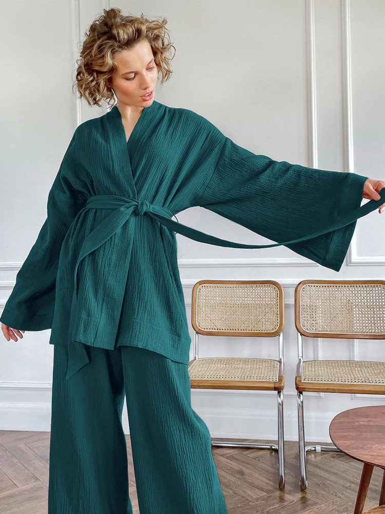 2023 Women's pajamas and pajamas set 100% cotton Bell-bottoms set