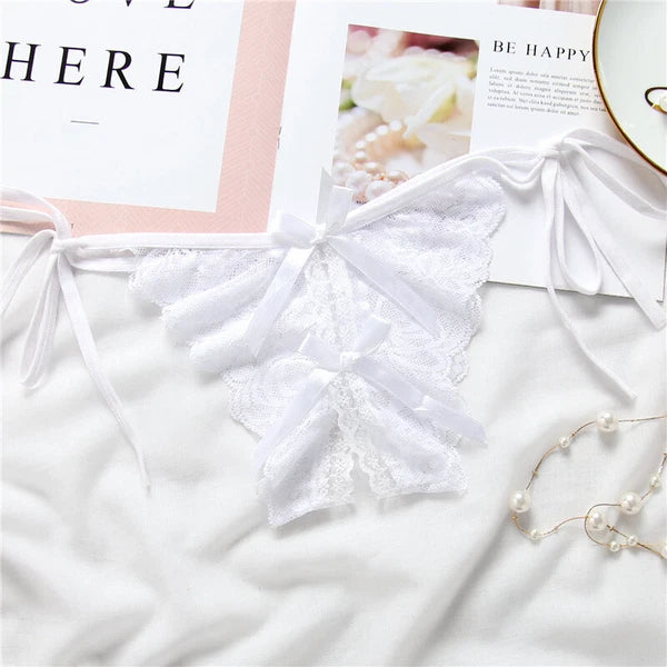 Sexy Lingerie Self Tie Trim Dots Mesh Lingerie Set See Through Bra and Panty US